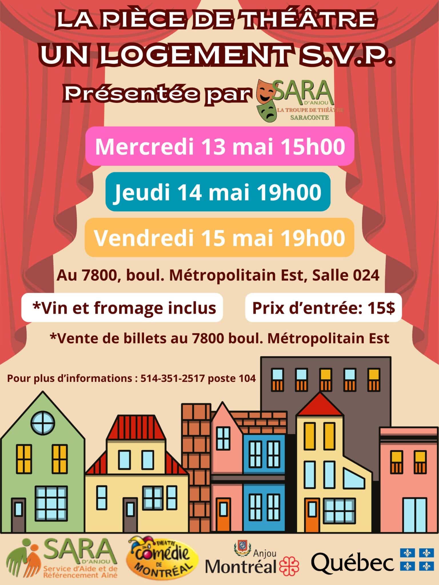 Pour obtenir votre billet, contactez Sabrina au 514-351-2517 poste 104 ou au s.tousignant@sara-anjou.com.