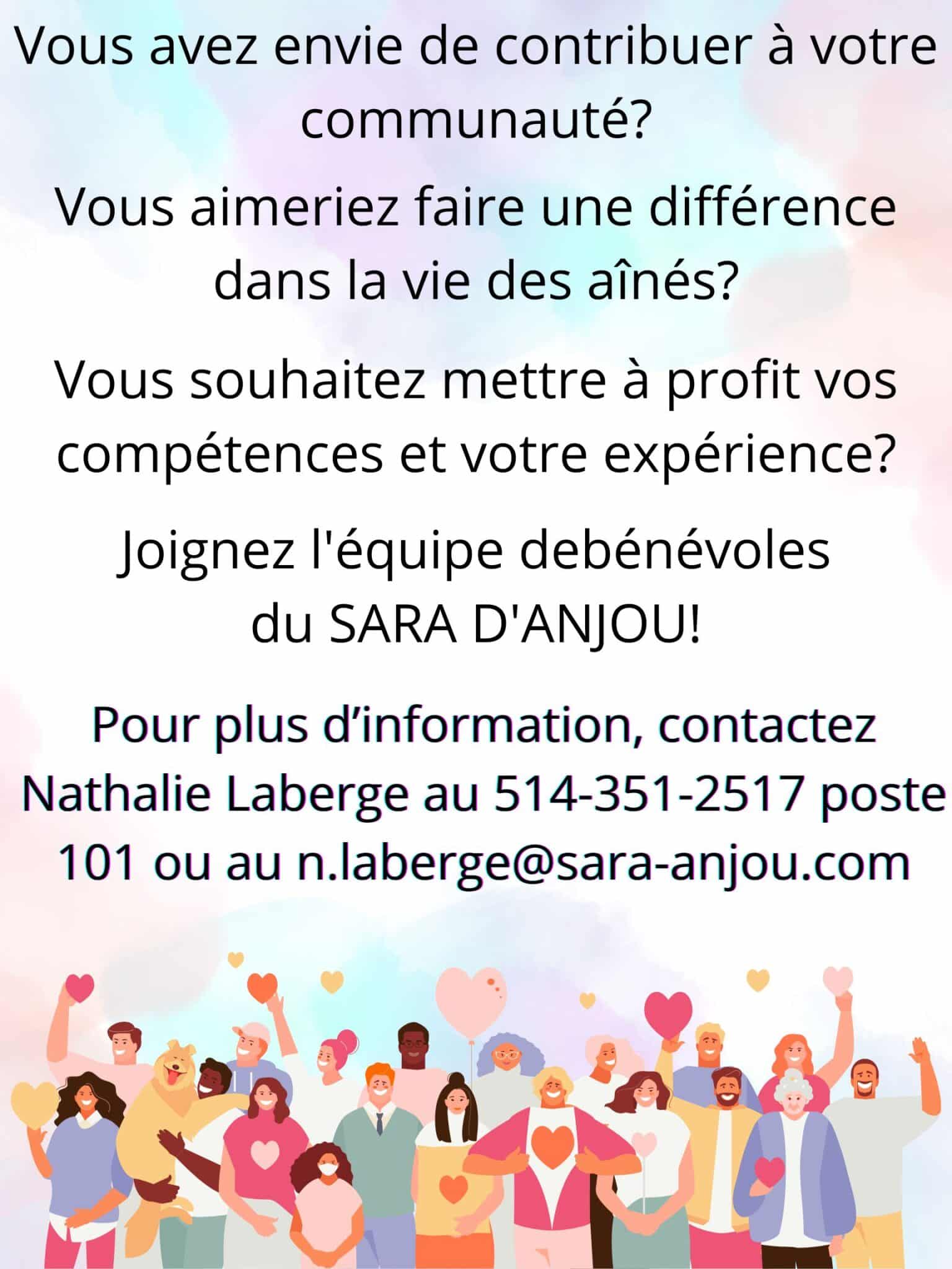 Pour plus d’information, contactez-nous au 514 351-2517 poste 101 ou à info@sara-anjou.com